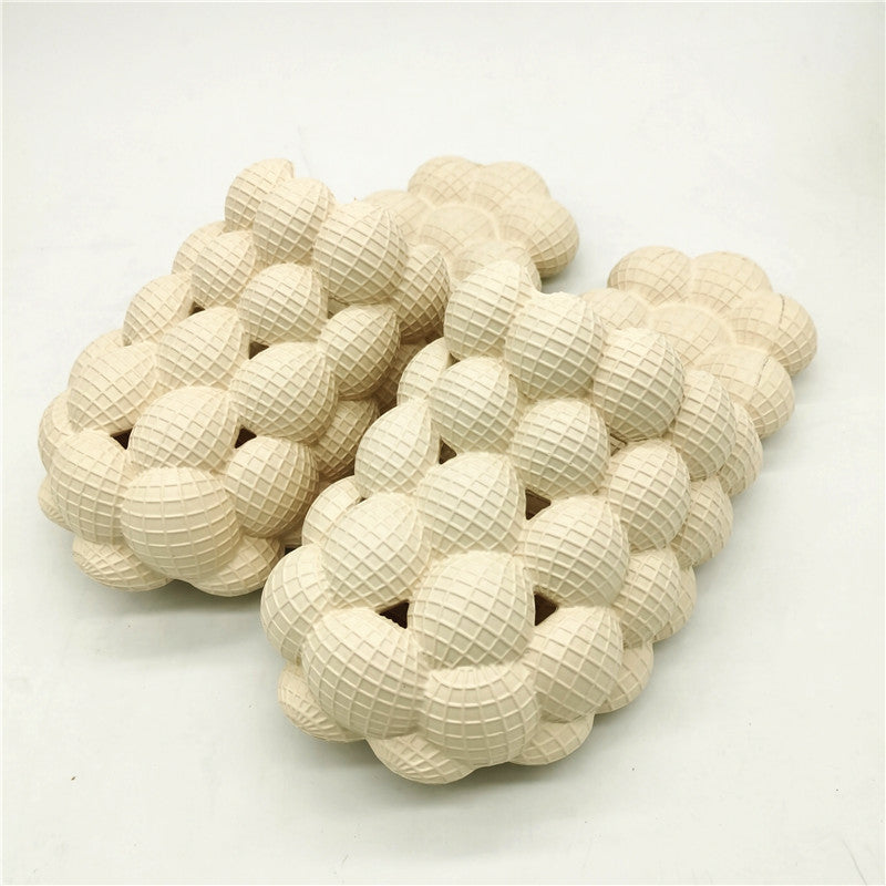 - WHERE COMFY MEETS STYLE!: Learn why thousands of customers have shopped with us (the official provider) & why they say that Golf Ball Slides Original are the most comfortable slides they own. You’ll be shocked at how quality our Bubble material is! They are sure to feel like you’re walking on fluffy clouds!