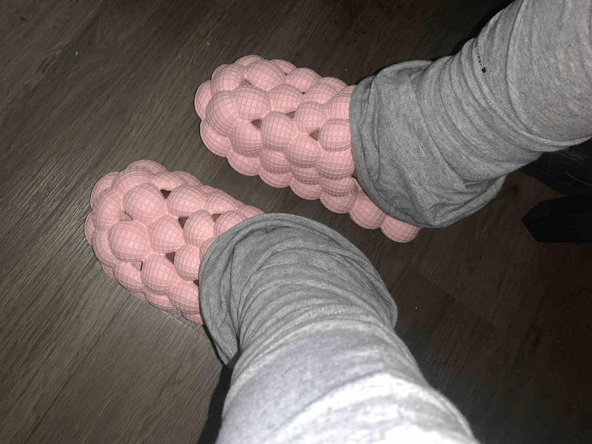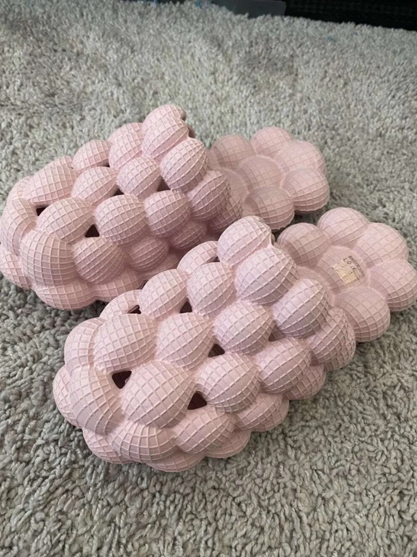 - WHERE COMFY MEETS STYLE!: Learn why thousands of customers have shopped with us (the official provider) & why they say that Pink Bubble Slides are the most comfortable slides they own. You’ll be shocked at how quality our Bubble material is! They are sure to feel like you’re walking on fluffy clouds!