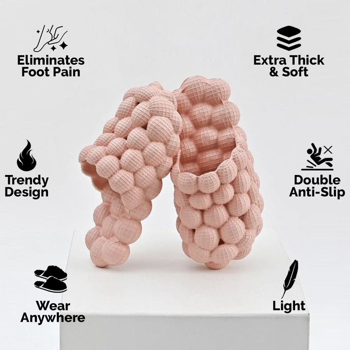 - WHERE COMFY MEETS STYLE!: Learn why thousands of customers have shopped with us (the official provider) & why they say that Bubble Slides Mens are the most comfortable slides they own. You’ll be shocked at how quality our Bubble material is! They are sure to feel like you’re walking on fluffy clouds!