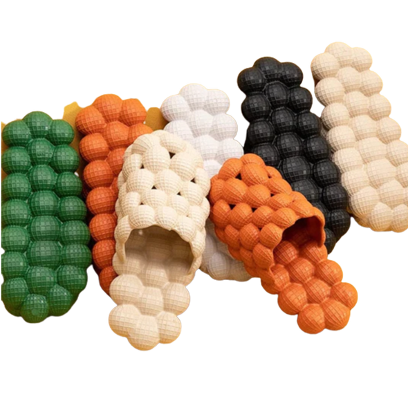 - WHERE COMFY MEETS STYLE!: Learn why thousands of customers have shopped with us (the official provider) & why they say that Orange Bubble Slides are the most comfortable slides they own. You’ll be shocked at how quality our Bubble material is! They are sure to feel like you’re walking on fluffy clouds!