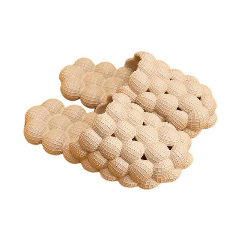- WHERE COMFY MEETS STYLE!: Learn why thousands of customers have shopped with us (the official provider) & why they say that Tan Bubble Slides are the most comfortable slides they own. You’ll be shocked at how quality our Bubble material is! They are sure to feel like you’re walking on fluffy clouds!